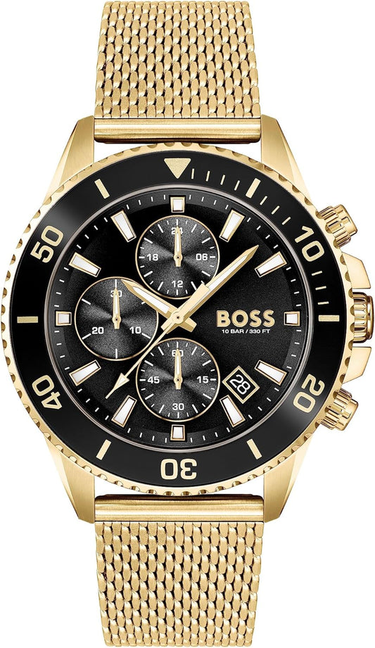BOSS Chronograaf Quartz Horloge voor Mannen met Goud Gekleurde Roestvrij Staal Armband - 1514006, Zwart, armband