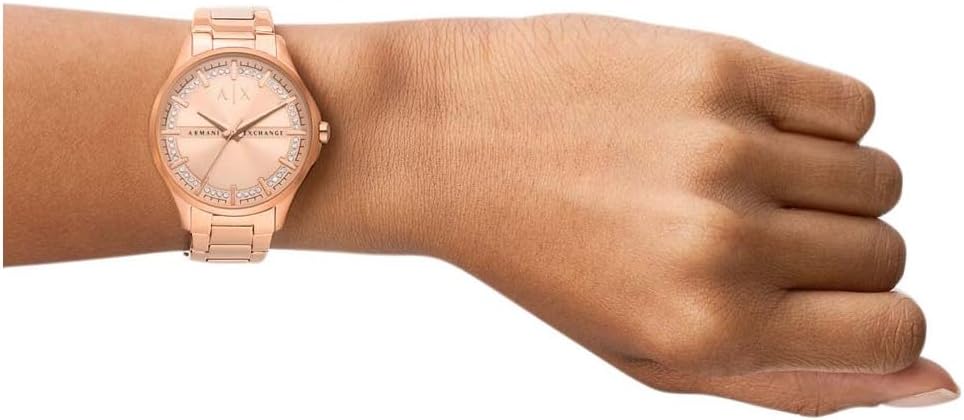 Armani Exchange Dames kwarts 3 wijzers horloge met armband LADY HAMPTON AX5264, roze goud, Eén maat, AX5264-AMZUK