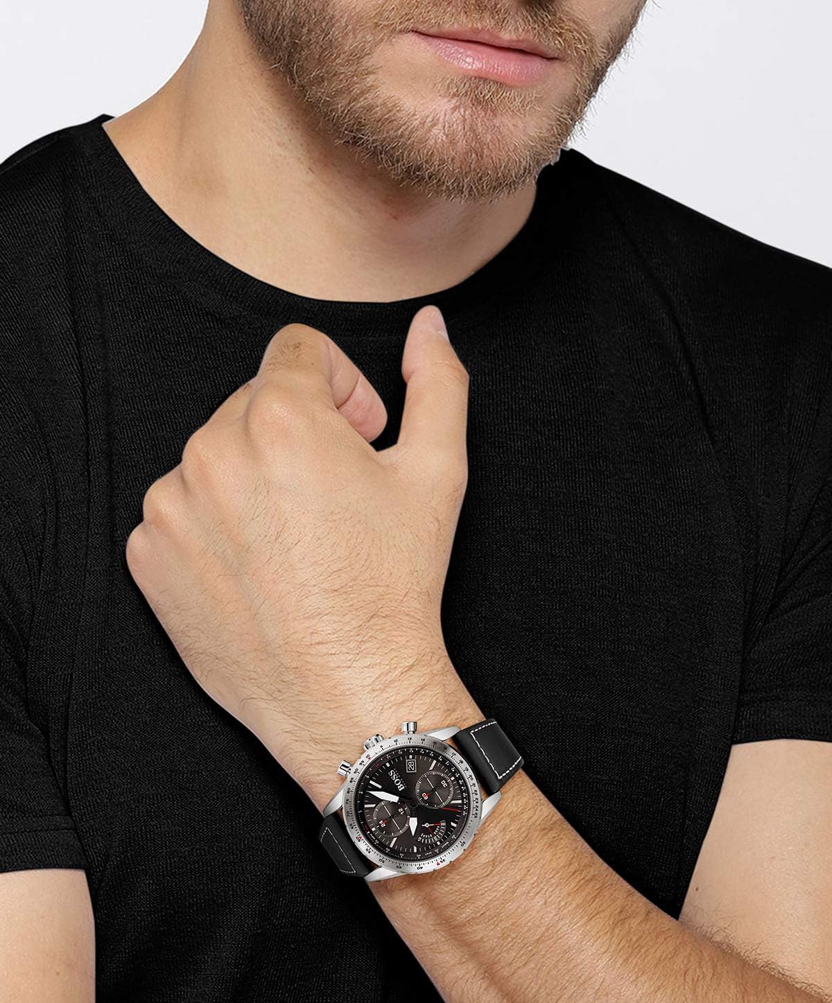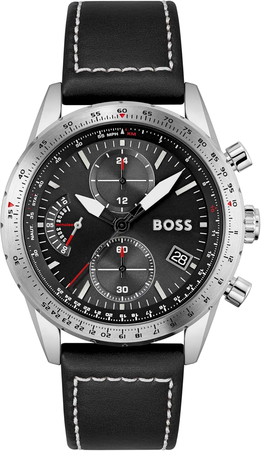 De Pilot Edition Chrono van BOSS maakt van je leven een Pilot Edition chrono-avontuur. Door de luchtvaart geïnspireerde functies ontmoeten sportieve esthetiek – deze chronograaf in retro-look met datumweergave scoort met een zelfbewust, stijlvol design. In vijf kleurencombinaties met markante, lichtgevende wijzers is de Pilot Edition Chrono een horloge voor heren, dat zich in alle situaties onderscheidt van de massa.