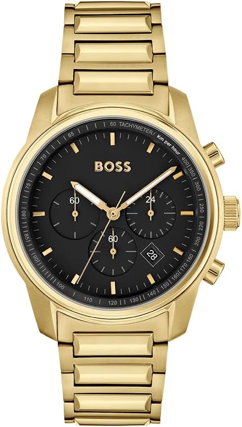 BOSS Chronograaf Quartz Horloge voor Mannen met Goud Gekleurde Roestvrij Staal Armband - 1514006, Zwart, armband