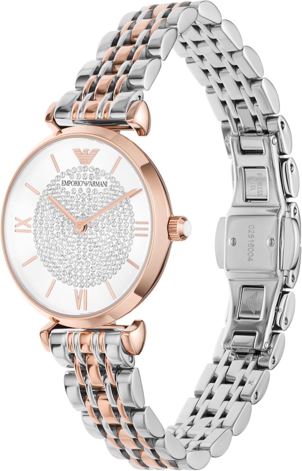 Emporio Armani Dameshorloge, kwartsuurwerk met twee wijzers en 32 mm behuizing met roestvrij staal, leren of siliconen armband