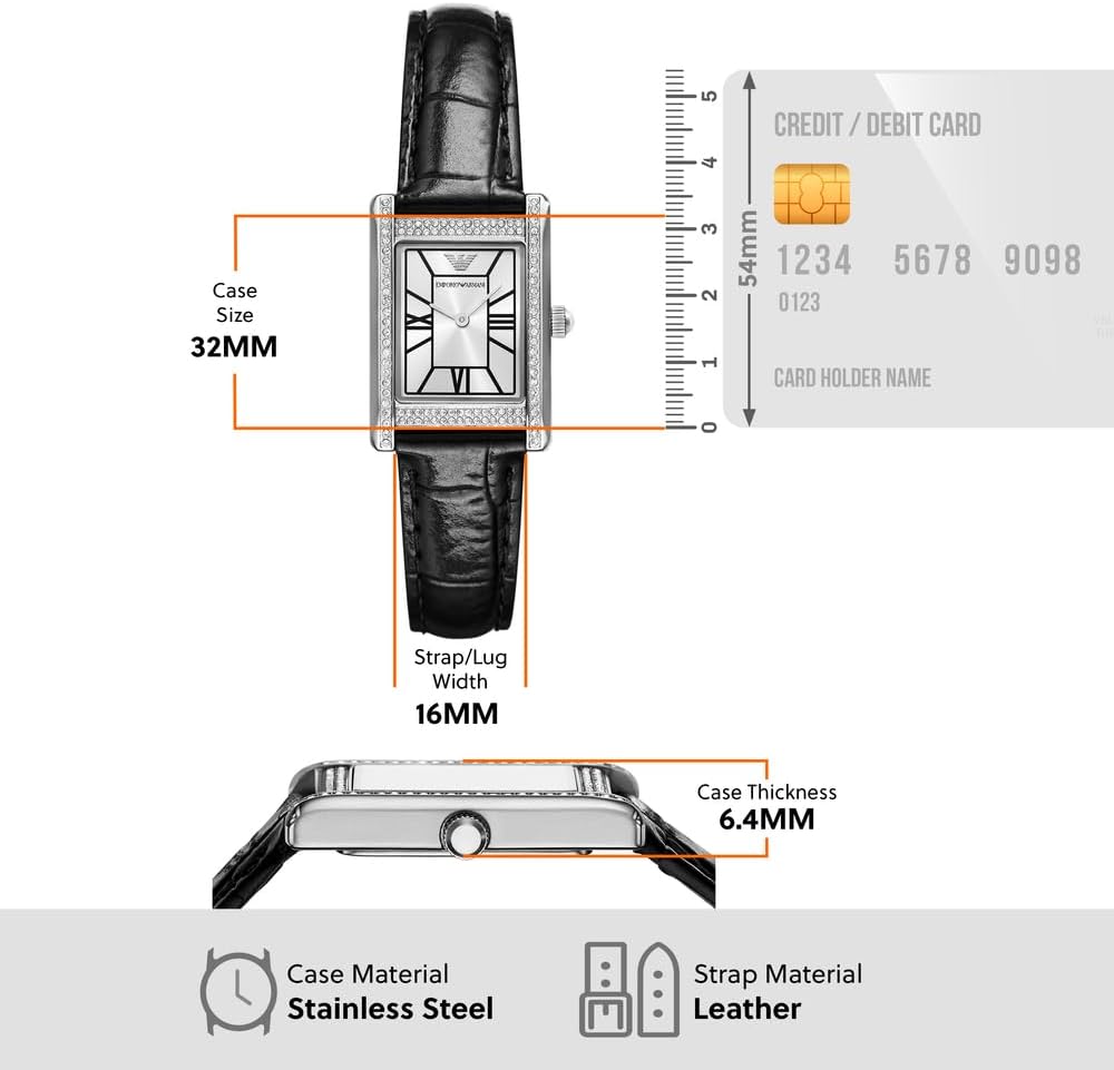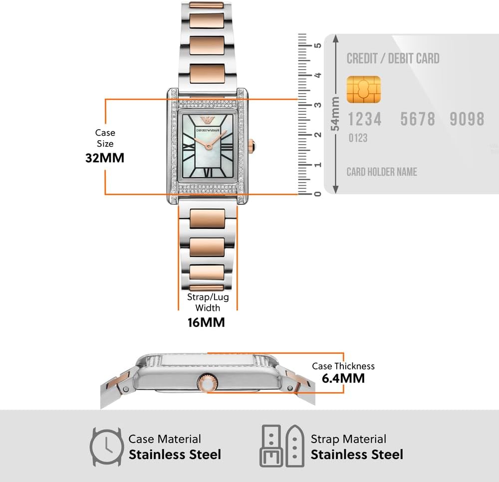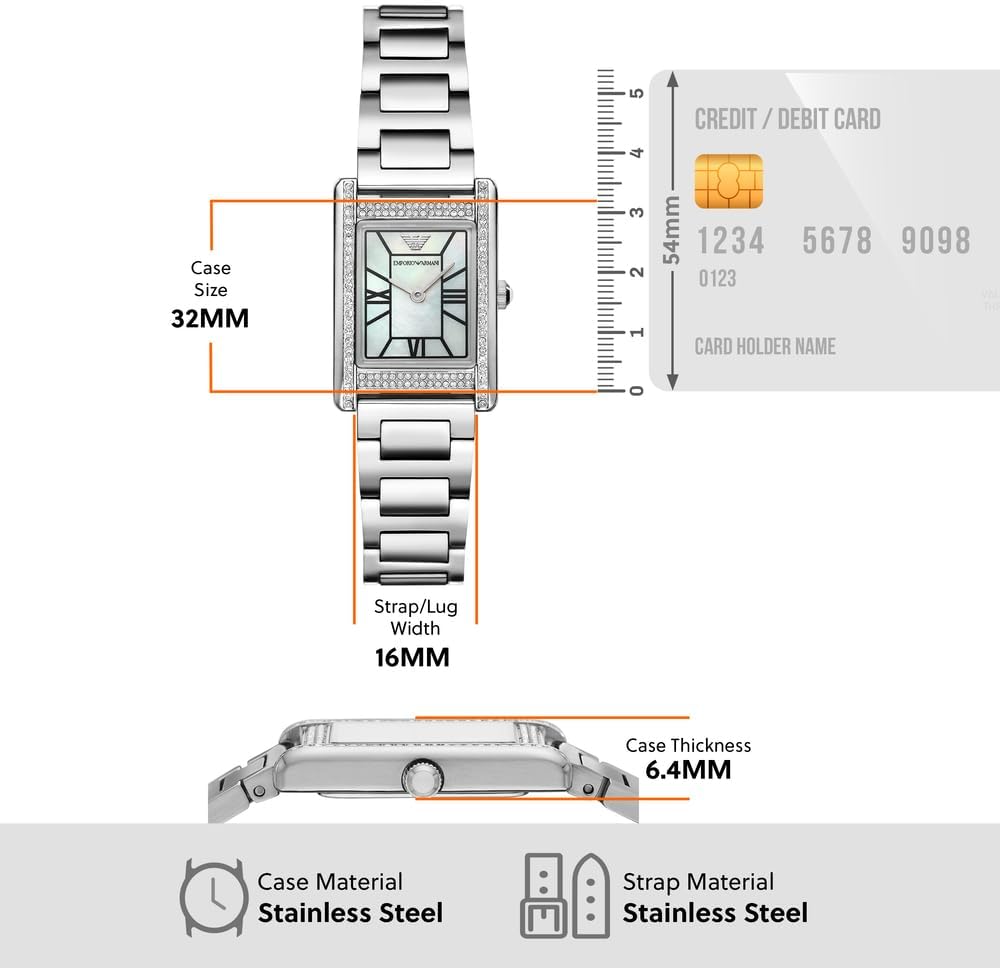 Emporio Armani horloge voor dames, kwartsuurwerk en kastmaat 31 mm met roestvrij stalen, lederen of siliconen band