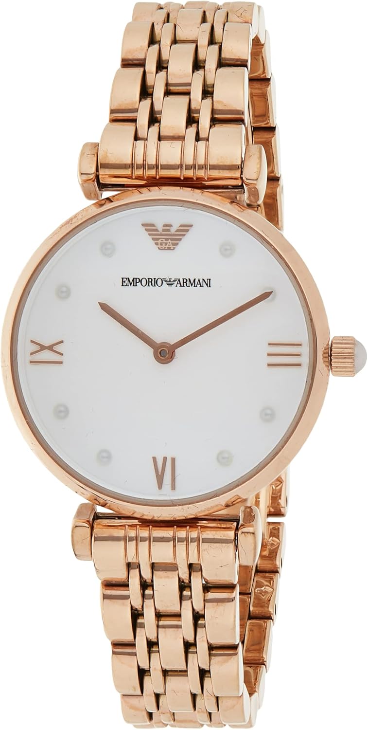 Emporio Armani tweehands rose goudkleurige roestvrijstalen horloge