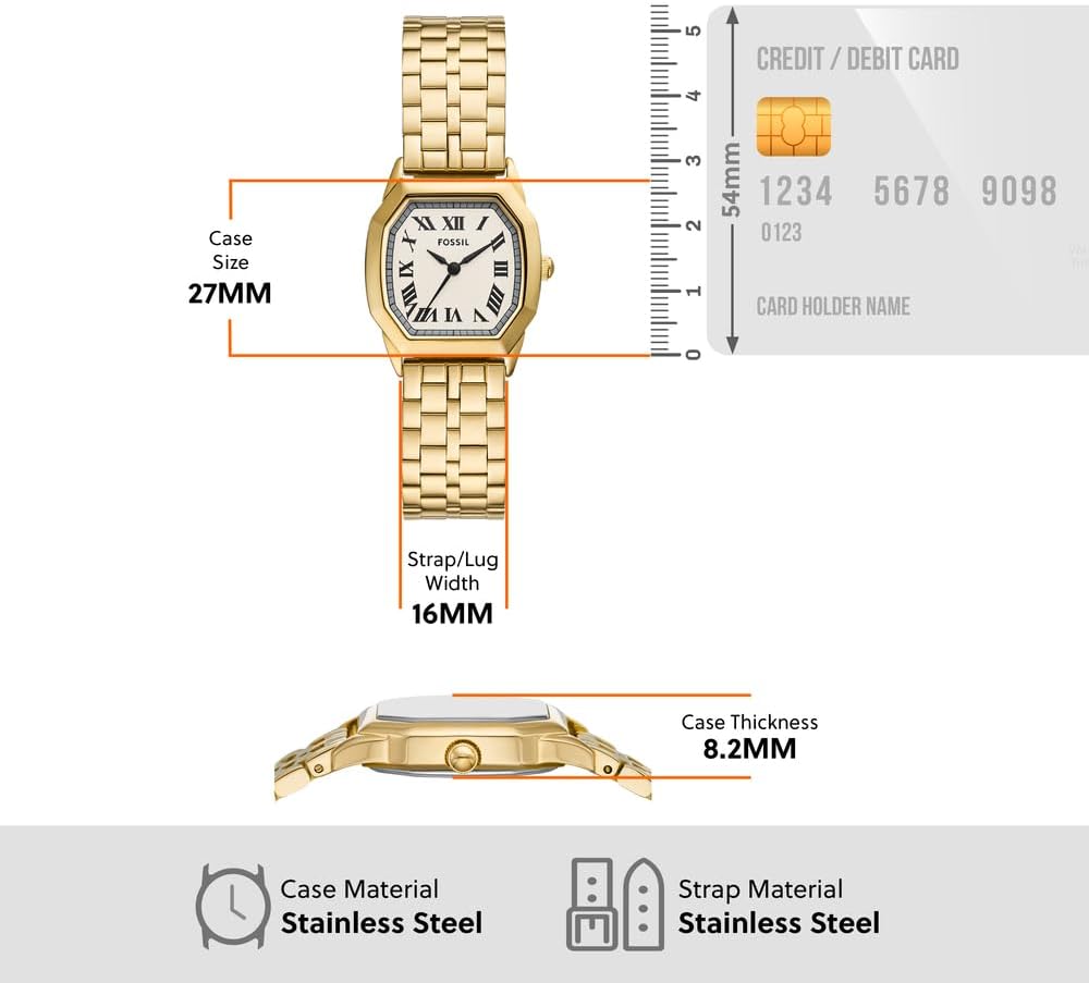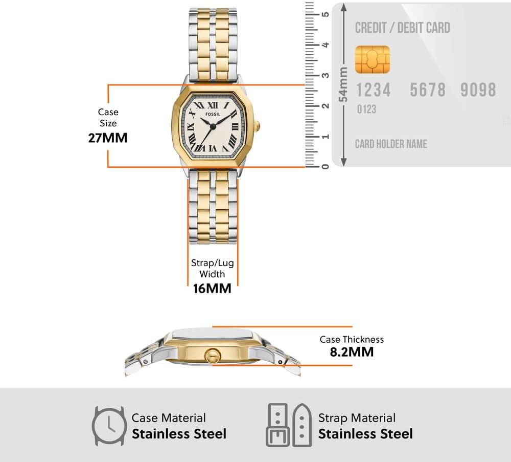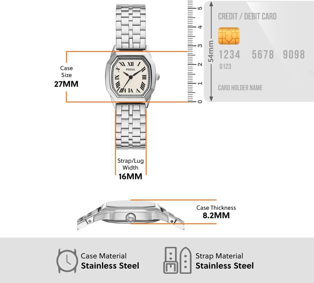 Fossil Harlow Horloge voor Dames, Quartz uurwerk met Roestvrijstalen of Leren Band,