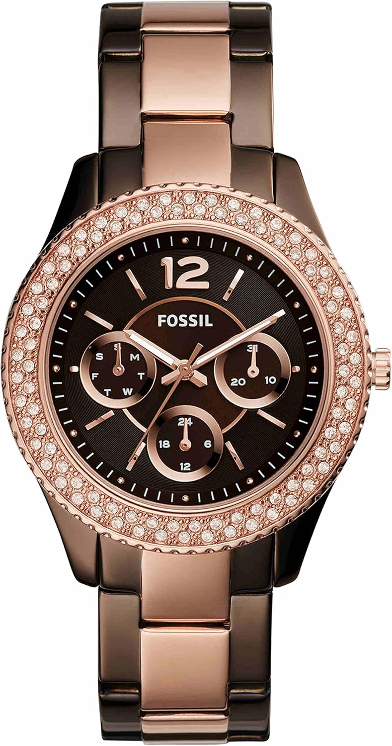 Fossil Vrouwen Analoge Quartz Horloge Met Roestvrij Stalen Band ES4079, Bruin, Quartz Horloge
