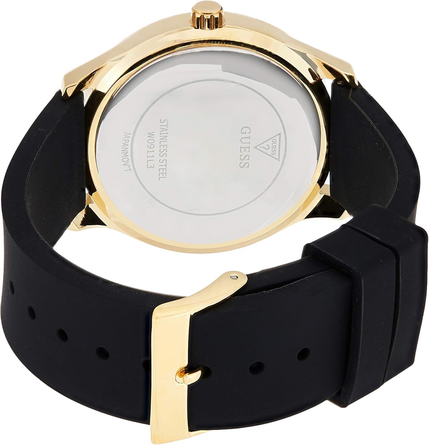 Guess Dames analoog kwartshorloge met siliconen armband W0911L3, zwart, armband