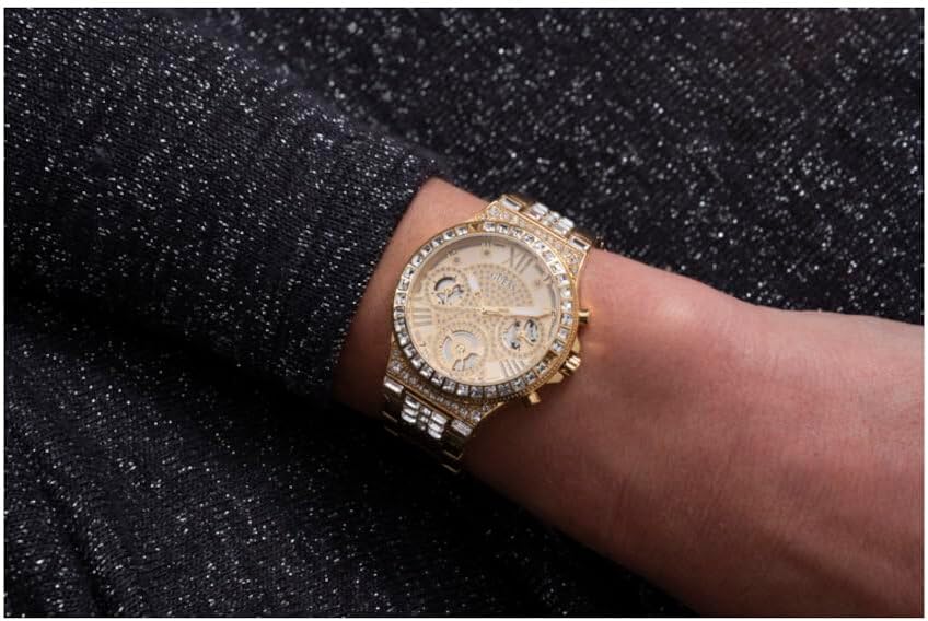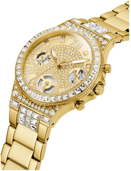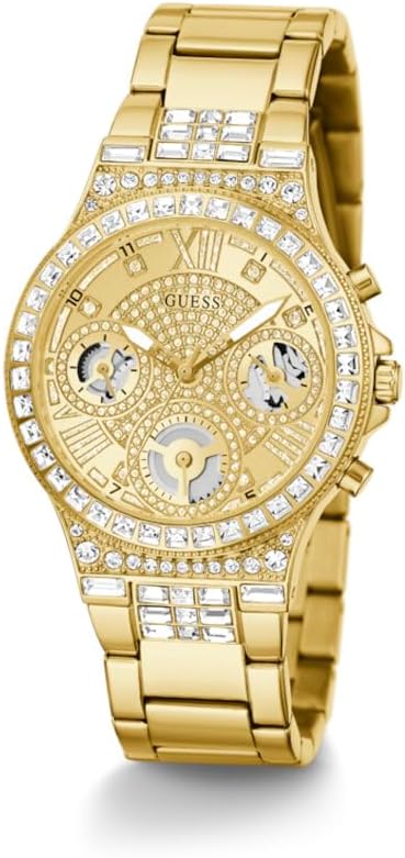 GUESS Dames sport multifunctionele Glitz met kristallen 36 mm horloge - roze wijzerplaat rose goudkleurige roestvrijstalen kast en armband