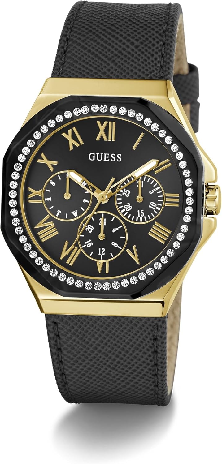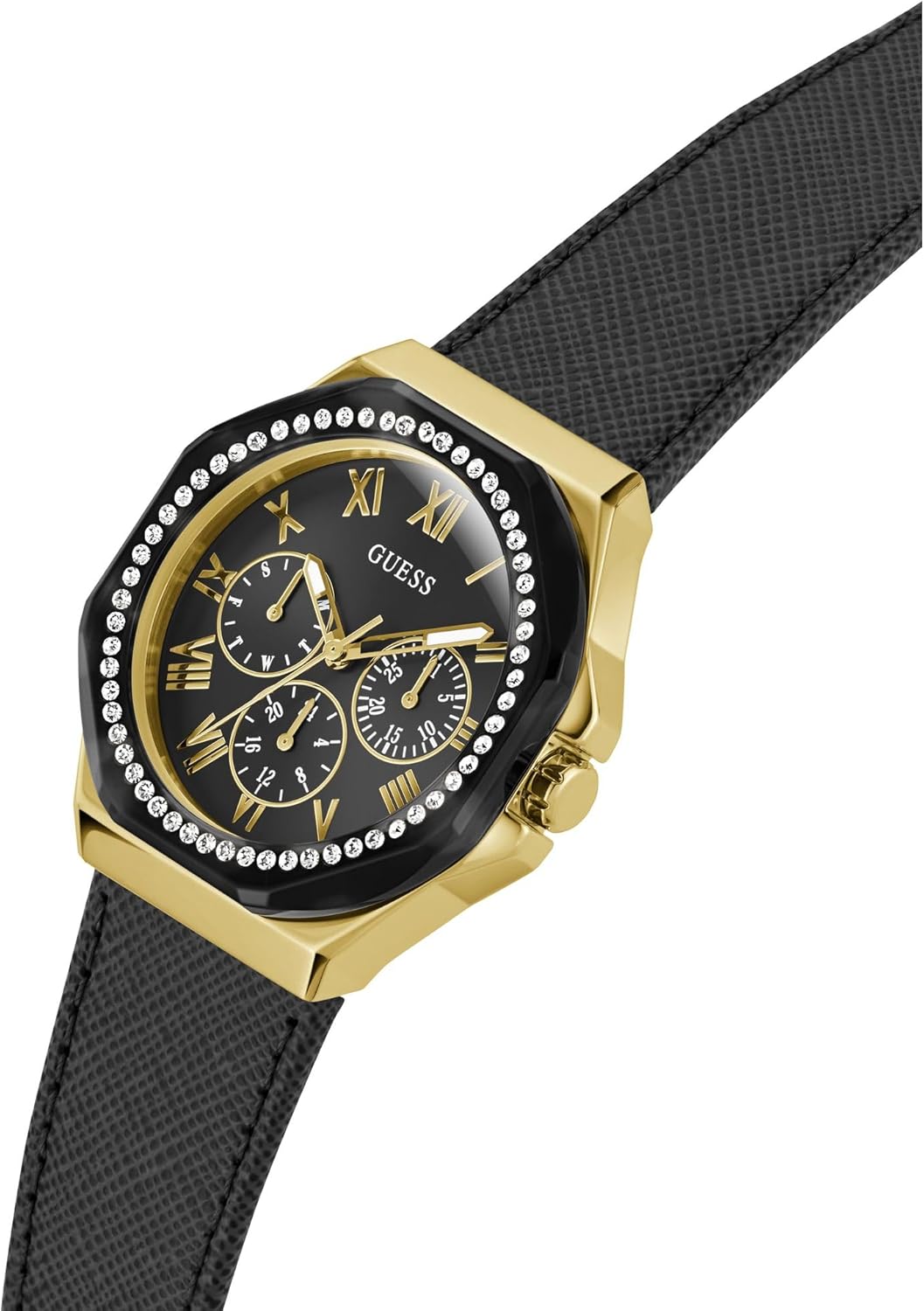 GUESS Lederen Womens analoge zwarte wijzerplaat vrouwen horloge Gw0753L4, band kleur-zwart, zwart, riem, Zwart, riem