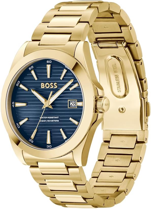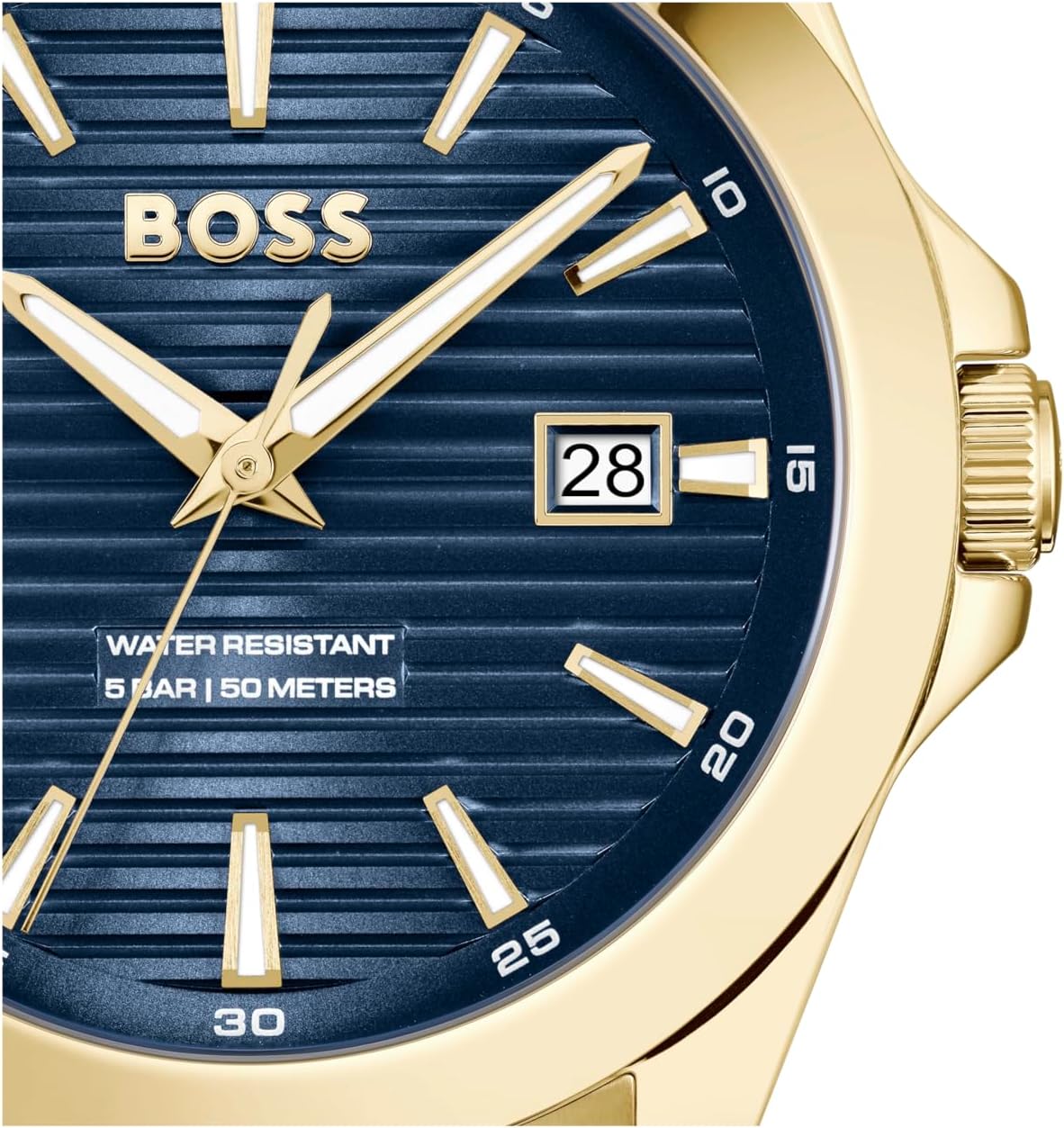 Hugo Boss Heren blauwe wijzerplaat ionische vergulde dunne gouden stalen armband horloge - 1514172