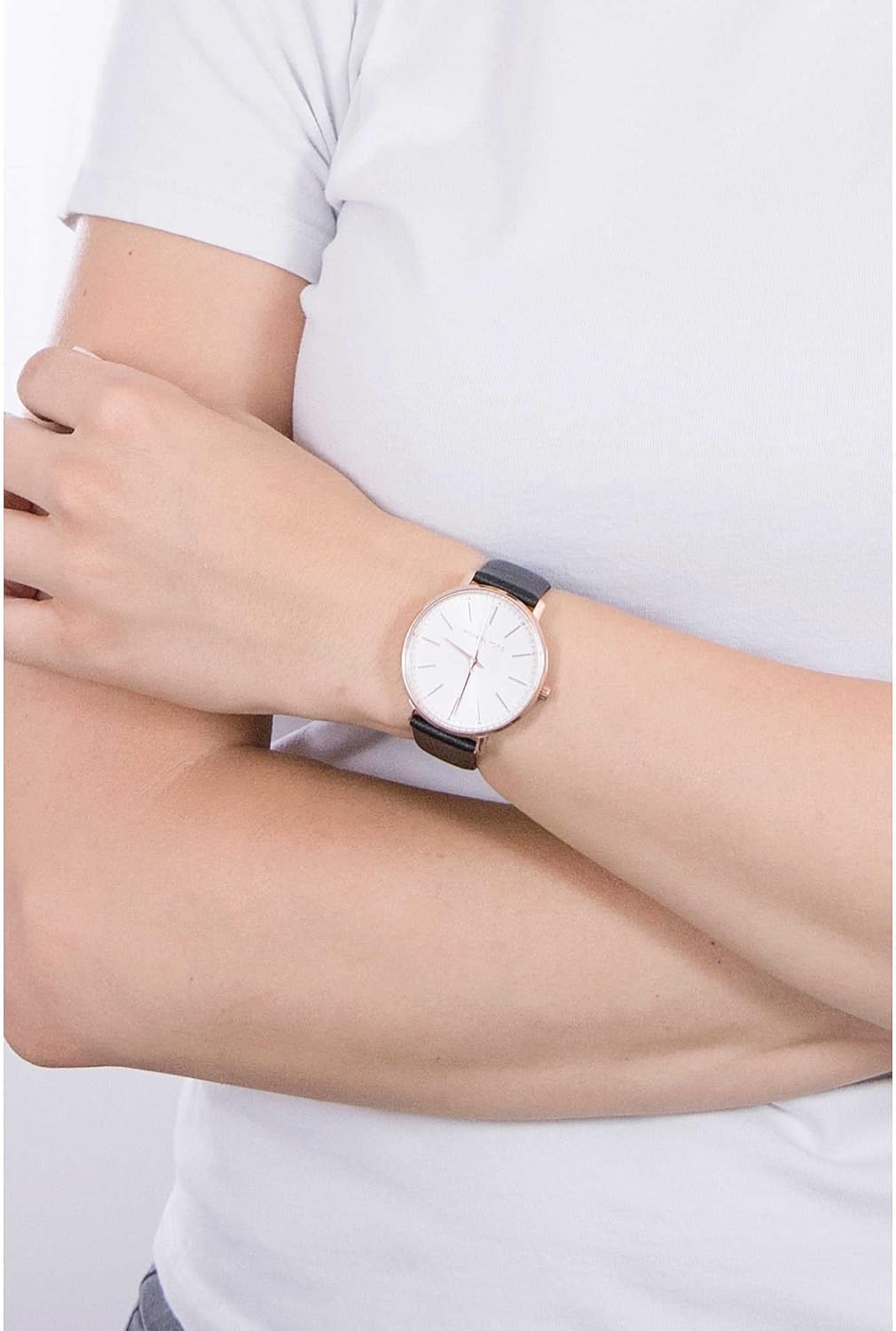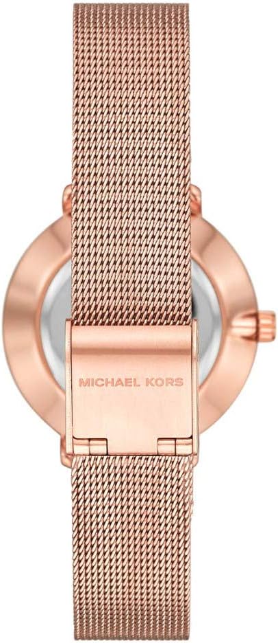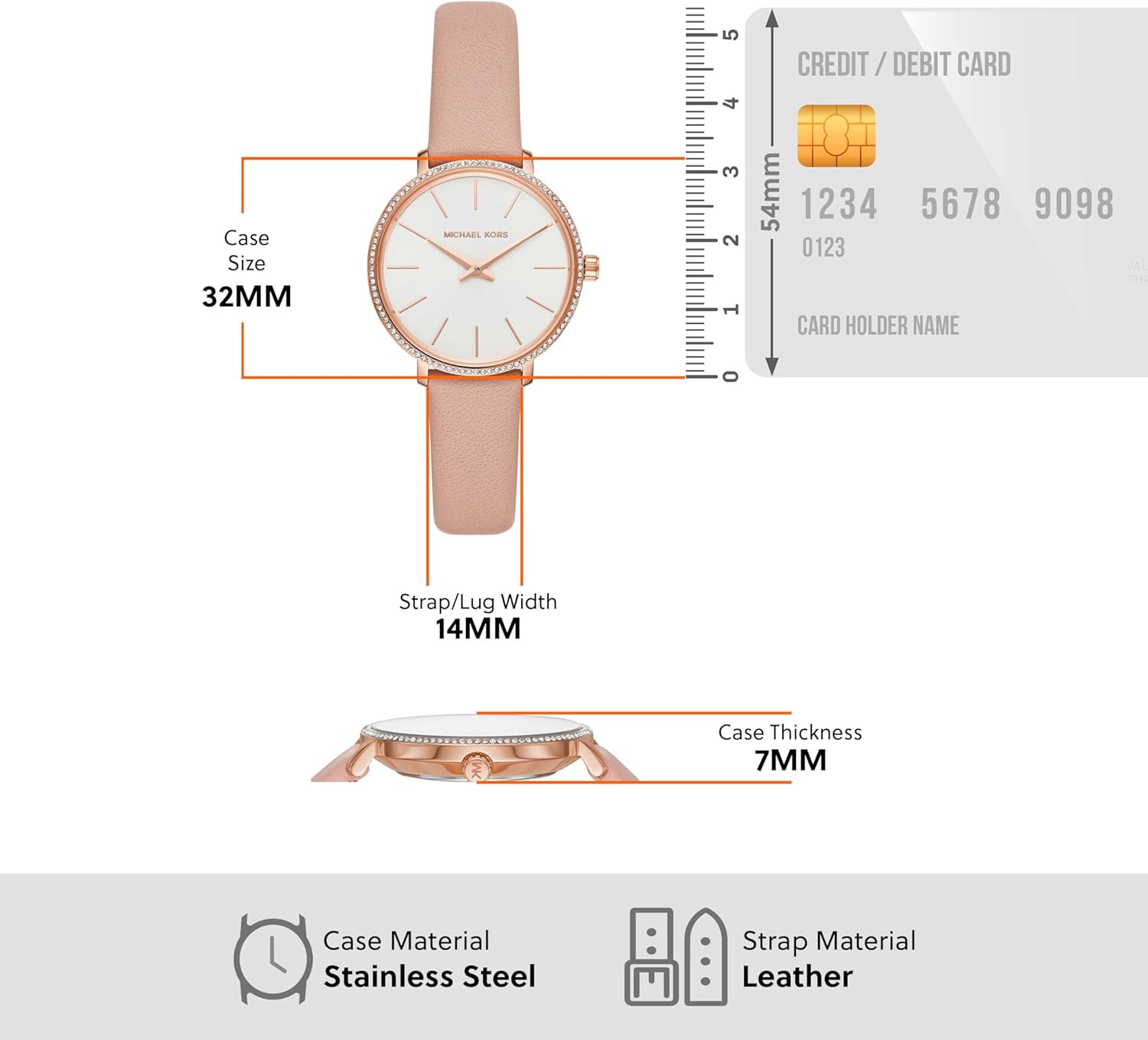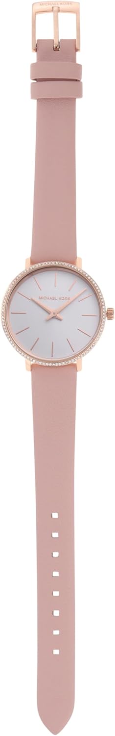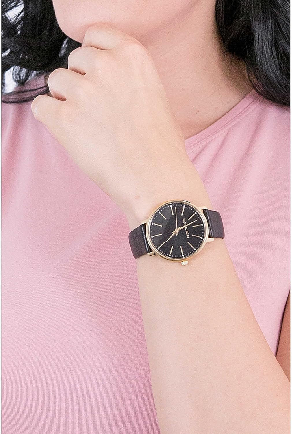 Dit 38 mm grote Pyper-horloge beschikt over een goudkleurige zonnewijzerplaat met goudkleurige staafindices, een driewijzerwerk en een facetgeslepen goudkleurige roestvrijstalen armband.