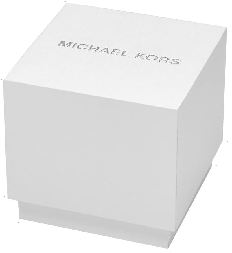Michael Kors ' Ritz 42mm horloge heeft een pavé glitter wijzerplaat met een goudkleurig logo, een glitter topring, drie-wijzer uurwerk en goudkleurige roestvrijstalen armband.