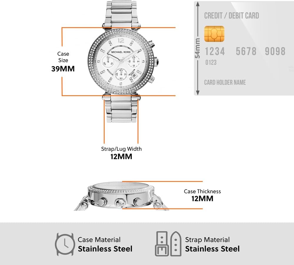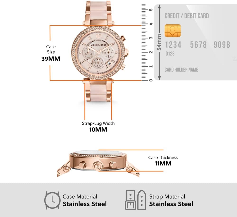 Michael Kors Parker Horloge voor dames, uurwerk chronograaf met roestvrij stalen of lederen band