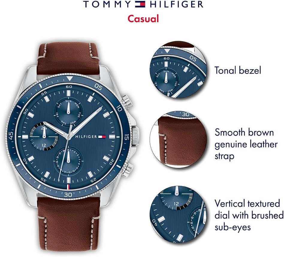 Tommy Hilfiger polshorloges blijven trouw aan het oorspronkelijke ontwerpconcept van het merk ook nog steeds ongereguleerd. De horlogecollectie van Tommy Hilfiger belichaamt traditionele Amerikaanse stijl met een vleugje modern en varieert van chronograaf van roestvrij staal en modellen met meerdere wijzerplaten tot stijlvolle designs met echte diamanten, omkeerbare armbanden en de karakteristieke Tommy Hilfiger-details zoals Tartan-gravure en de klassieke materialen en kleuren van Tommy Hilfiger.