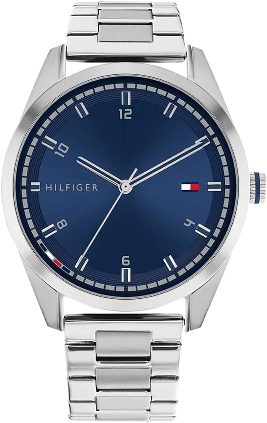 - Tommy Hilfiger Blauwe wijzerplaat met zonnestralingseffect en roestvrijstalen details