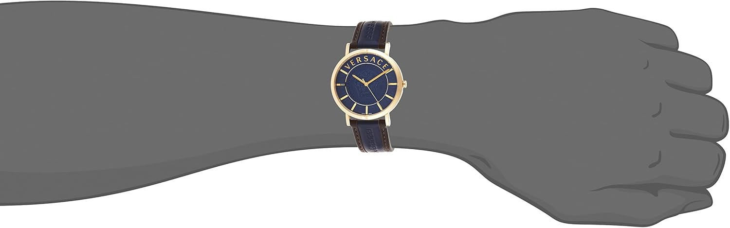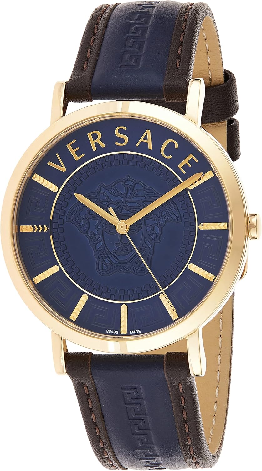 Zeer mooi dameshorloge van het merk Versace. Het horloge beschikt over een goudkleurige roestvrijstalen behuizing met een diameter van 40 mm. Blauwe wijzerplaat, goudkleurige wijzers en saffierglas, gesp. Het horloge heeft een waterdichtheid van 5 bar (geschikt voor dagelijks gebruik zoals B. baden, douchen of handen wassen)