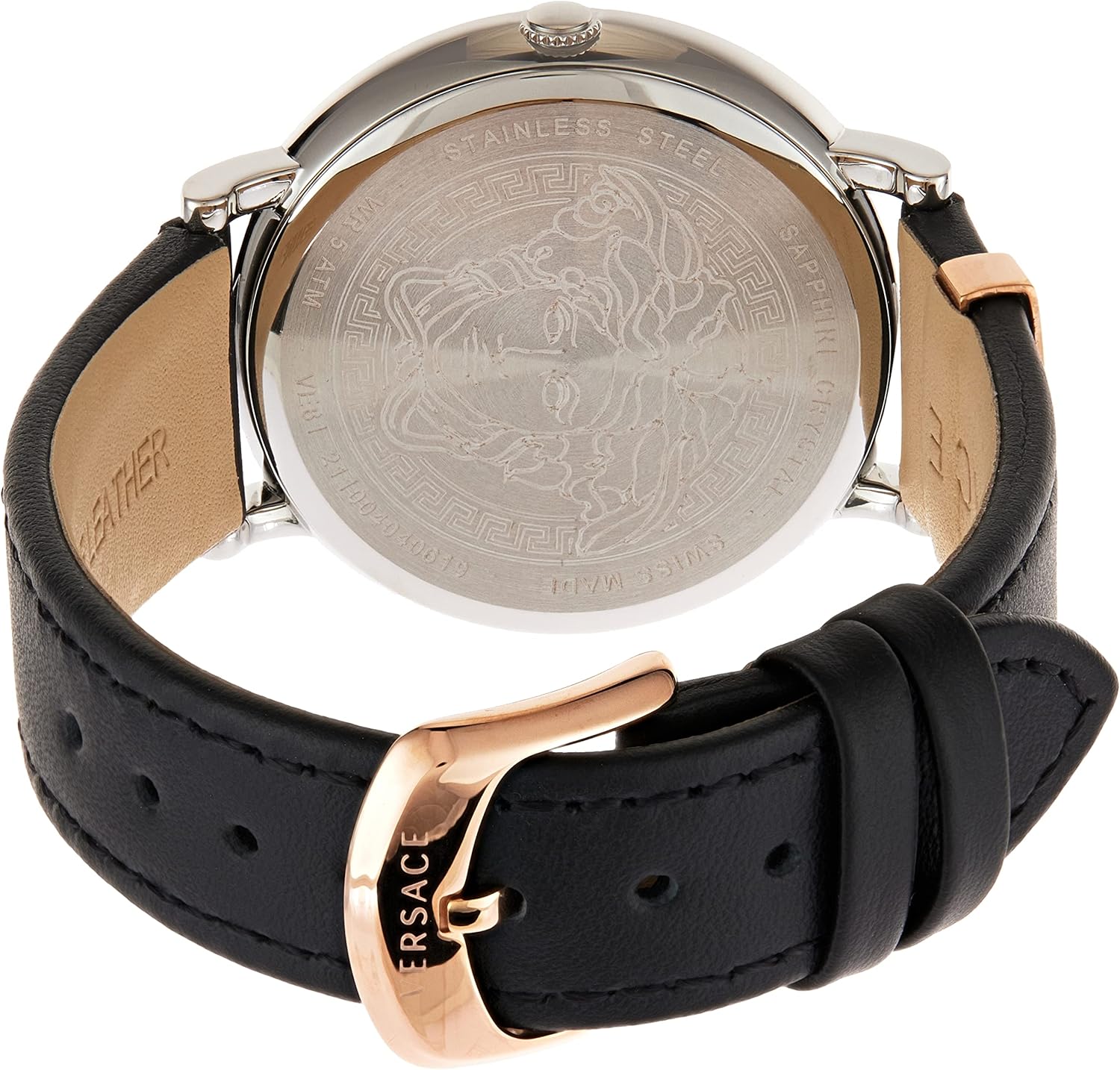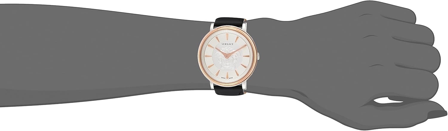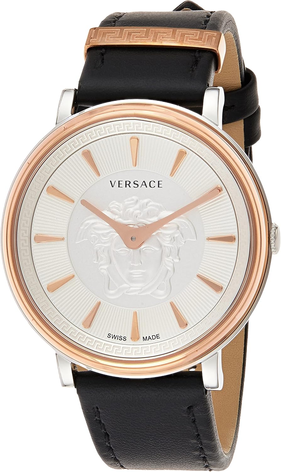- De witte wijzerplaat bevat een Versace-logo in het midden