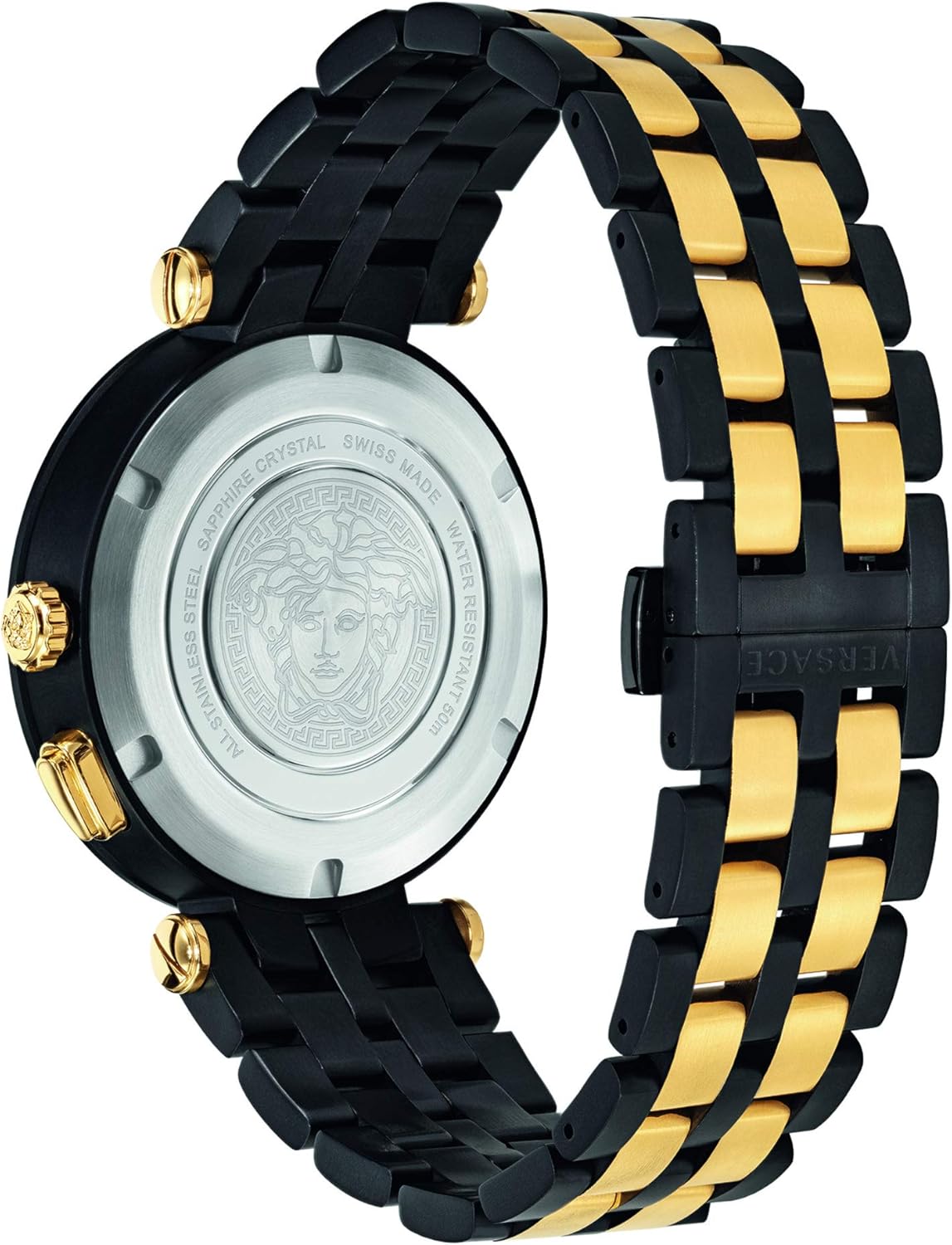 - De armband van het Versace-horloge van roestvrij staal beschikt over een gemakkelijk instelbare vouwsluiting, waarmee het horloge eenvoudig en individueel aan de pols kan worden aangepast.